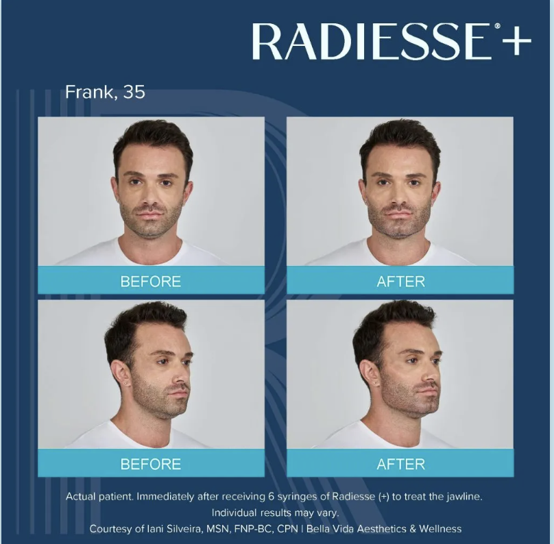 Radiesse is made with calcium hydroxylapatite (CaHA)—a unique formulation that provides immediate volume while stimulating collagen and elastin for continued improvement.